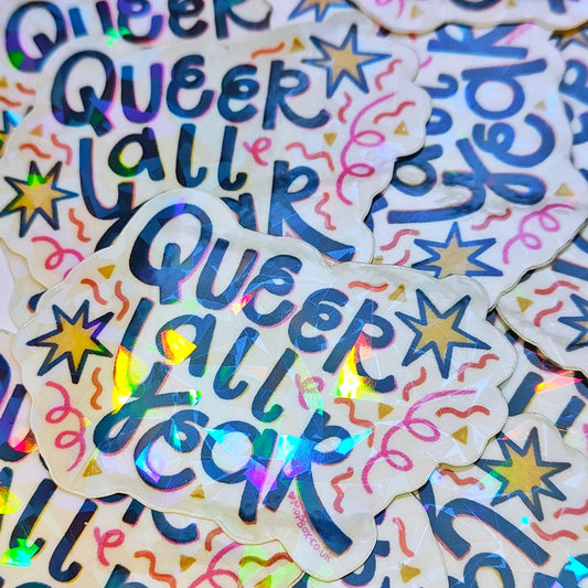 Queer All Year Confetti Cannon - LGBT Clear Crackle Holographic Sticker